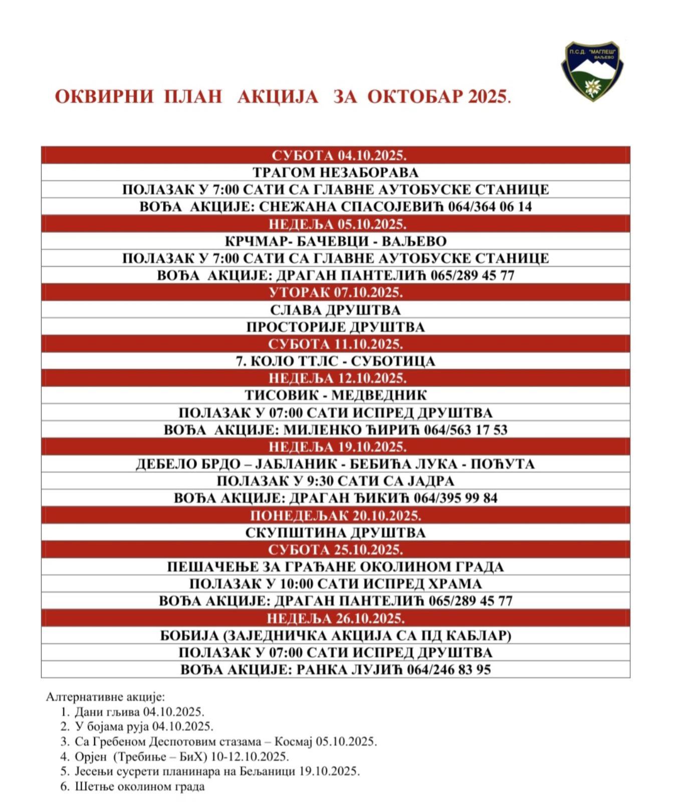 План акција за октобар 2025.