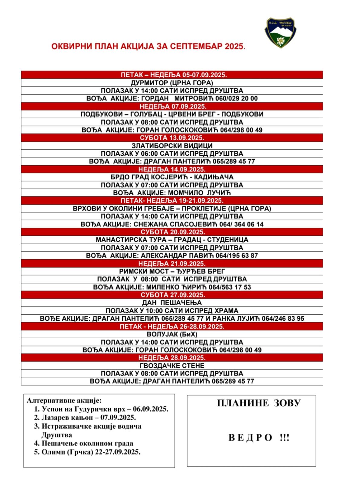 План акција за септембар 2025.